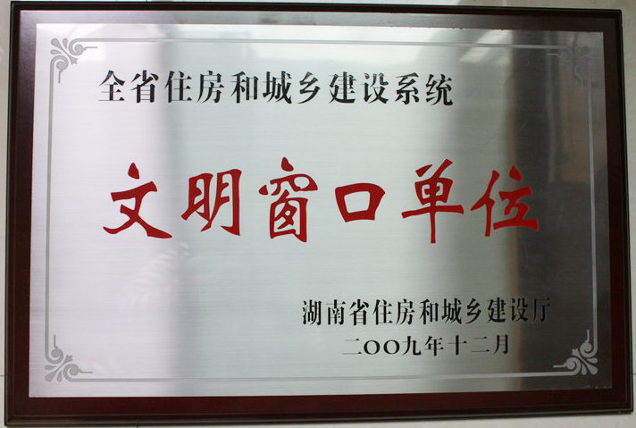2009年12月被湖南省住房和城鄉(xiāng)建設(shè)廳評(píng)為“全省住房和城鄉(xiāng)建設(shè)系統(tǒng)文明窗口單位”